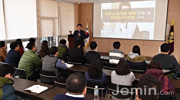 문상필 제이제이아카데미 대표는 22일 제민일보 1층 대강당에서 열린 '제민일보사 1월 임·직원 윤리교육'에서 개인정보 보호의 중요성과 직장 내 성희롱 예방법 등에 대해 강의했다.