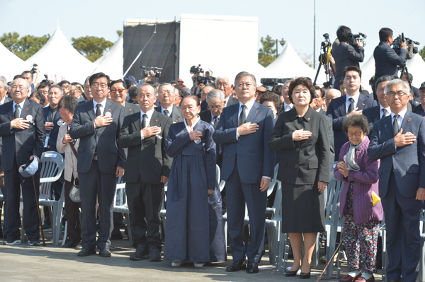 문재인 대통령 추념사 통해 공식 사과 표명…생존자 및 유가족 위로도
