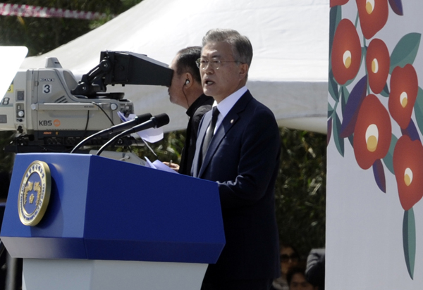 4·3 생존 희생자와 유가족 여러분, 제주도민 여러분, 돌담 하나, 떨어진 동백꽃 한 송이, 통곡의 세월을 간직한 제주에서 "이 땅에 봄은 있느냐?" 여러분은 70년 동안 물었습니다.