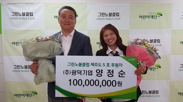 초록우산 어린이재단 제주지역본부(본부장 김희석)는 3일 (주)광덕기업의 양정순 대표(52)가 초록우산 어린이재단 '그린노블클럽'에 가입했다고 밝혔다.