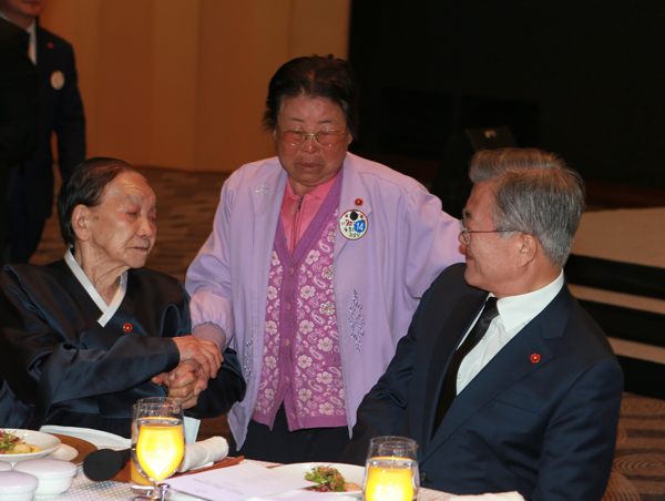 문재인 대통령이 3일 제주 4·3 희생자 및 유가족과의 오찬 자리에서 제주 4·3의 완전한 해결을 위해 정부가 적극 나서겠다는 입장을 거듭 표명했다.