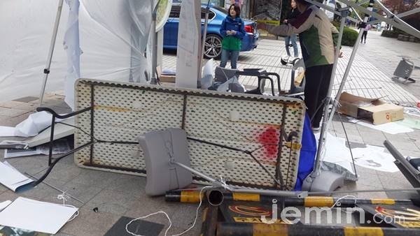 제주4·3 제70주년 범국민위원회(이하 범국민위) 등에 따르면 4일 새벽 창원시 용호동 정우상가 앞에 마련된 '제주4·3 추모 시민 분향소'가 파손됐다.