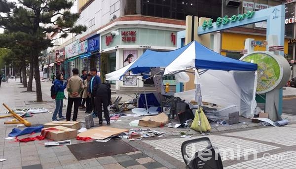 분향소 천막은 찢겨진 채 무너졌으며, 문재인 대통령과 김정숙 영부인을 비하하는 내용의 낙서도 남아있었다.