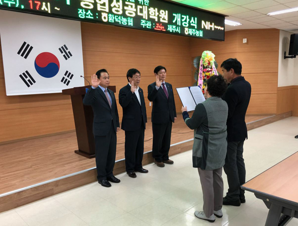 올해로 제7기를 맞는 농업성공대학은 지난 16일 구좌농협(조합장 부인하)을 시작으로 제주시관내 9개 지역농협에서 수강생 592명이 참여하는 가운데 6개월간의 교육과정이 진행된다. 수강생 대부분이 50~60대 나이가 많은 농업인으로 구성됐다. 낮에는 일을 하고 오후 5시부터 7시까지 매주 1회 2시간 교육이 이루어진다.