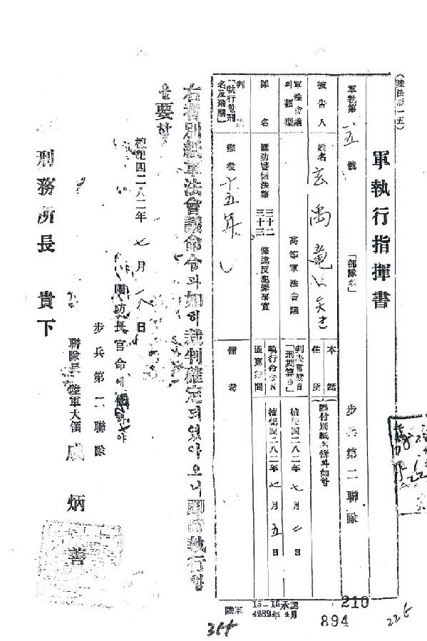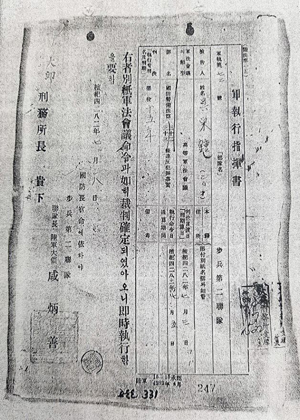 수형인 2명에 대한 군집행지휘서' 발견 이름·판결 등 상세히 기록