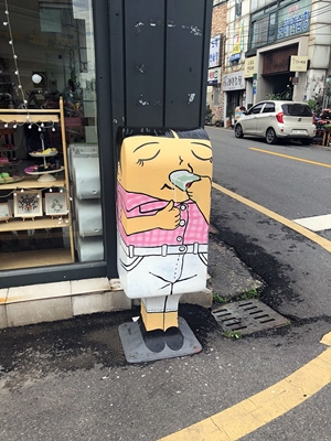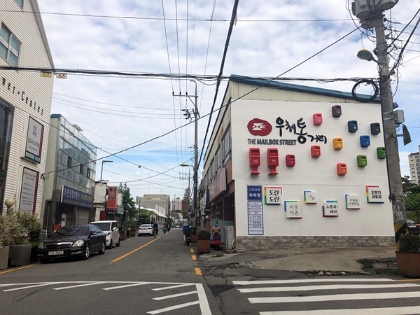 '도란도란 우체통 거리'로 불리는 이곳에는 가게마다 각각 다른 캐릭터를 그려 넣은 우체통이 세워져 있다. 주민들이 폐우체통 20여개를 우체국에서 기증받았다.