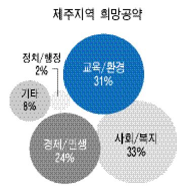 제주지역 유권자들은 사회·복지, 교육·환경, 경제·민생 분야를 중심으로 한 톡톡 튀는 희망공약을 제안했다.