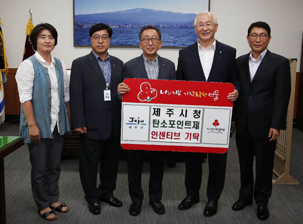 제주시는 11일 시장 집무실에서 2017년 상반기분 탄소포인트제 인센티브 2367만5000원을 제주사회복지공동모금회(회장 고승화)에 기탁했다.