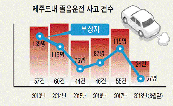제주지방경찰청에 따르면 제주도내에서 발생한 교통사고 중 졸음운전에 의한 사고는 5년간 총 262건이다.