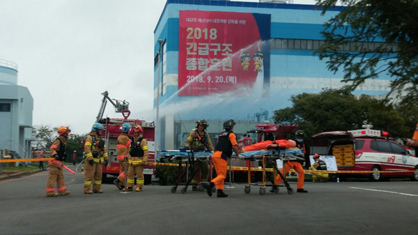 서부소방서 (서장 김영호)는 20일 한림읍 소재 '한림발전소'에서 대규모 재난상황을 가정, 긴급구조 기관 및 지원기관 등 관련 유관기관, 단체별 역할분담과 유기적인 공조체제를 구축함은 물론, 실제상황에서 효율적으로 대응 할 수 있는 현장지휘체계 확립 등 재난대응능력을 강화하기 위한 2018년 긴급구조종합훈련을 실시했다.