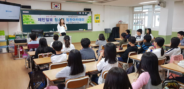 제민일보사(대표이사 사장 김영진)와 제주특별자치도가 공동 주최하는 '2018 찾아가는 청소년 칭찬아카데미'가 2일 제주중앙초등학교(교장 김금희) 4학년 1반 학생들을 대상으로 열렸다. 이날 칭찬아카데미에서 강사로 나선 김미리 제주가정위탁지원센터 사무국장은 학생들의 눈높이에 맞춰 칭찬의 힘을 설명하면서 생활 속에서 칭찬을 실천할 수 있도록 체험하는 시간을 가졌다.