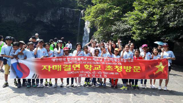 2017년 학생 10명과 교직원 5명을 제주로 초청해 함께 교류하면서 배려하는 마음을 키웠고, 올해는 한라초 학생들이 학용품 등 선물을 준비해서 칸호아제주초를 방문한다.