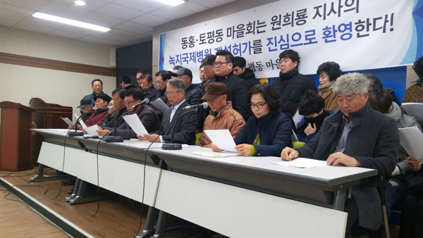 동홍동·토평동 마을회는 10일 제주도의회 도민의 방에서 기자회견을 열고 “JDC와 녹지그룹은 단지 내 사업들을 정상화하기 바란다”며 원희룡 지사의 녹지국제병원 개설허가에 대해 환영의 성명을 발표했다.