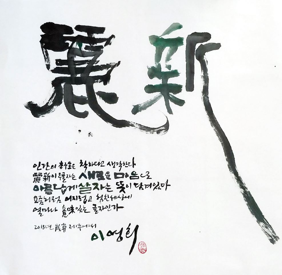 전시작은 한문 예서와 행초서 등 모든 서체와 현대서예, 캘리그라피 작품 등 40여점이다. 특히 왕희지의 '난정서'와 안진경의 '쟁좌위고' 등 서예대가의 행서를 옆에 두고 공부하며 따라 써내려간 대형 작품들을 선보인다. 문의=010-2689-5062. 김봉철 기자