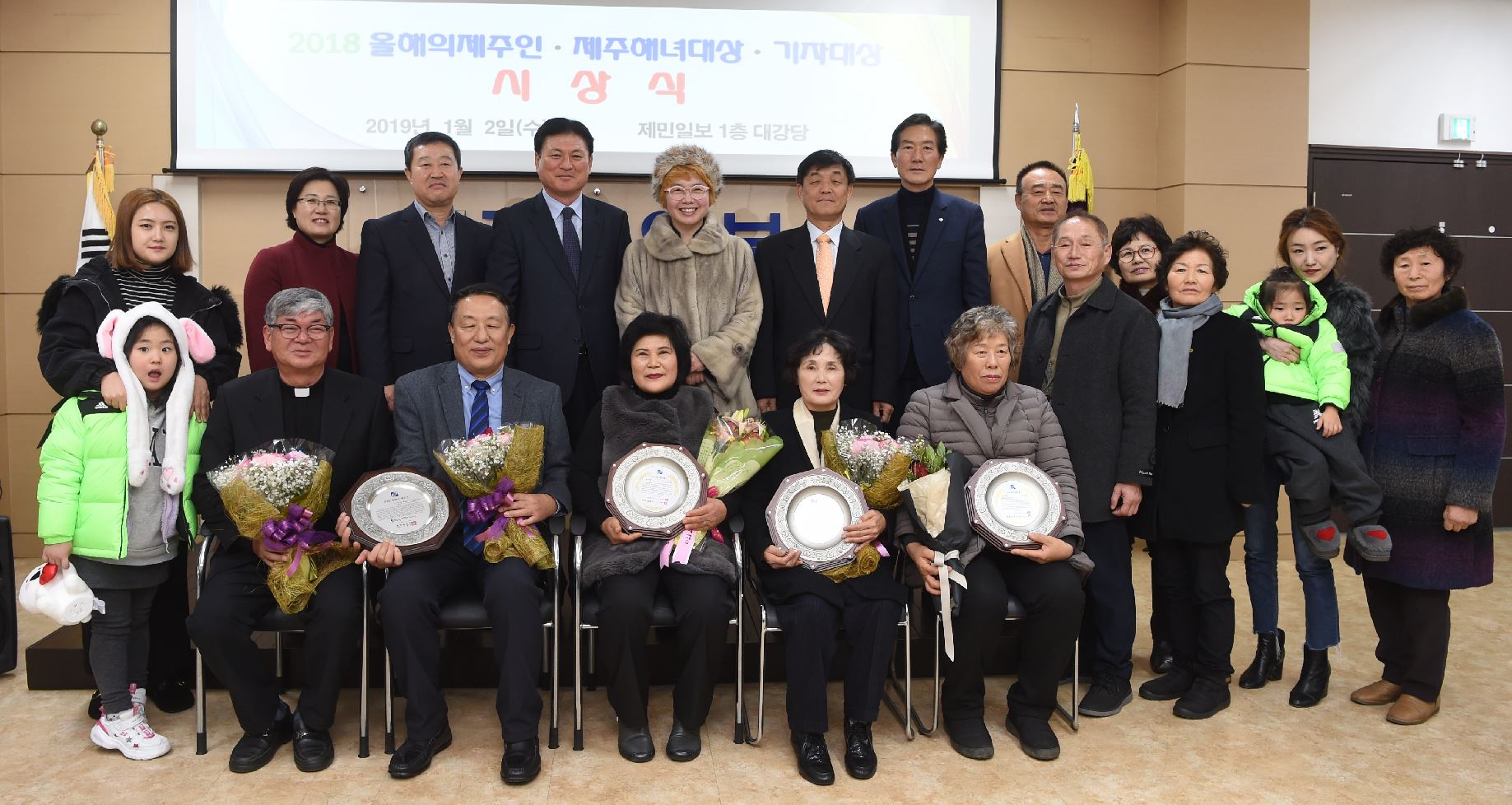 제민일보(대표이사 사장 김영진)가 선정한 '2018 올해의 제주인'과 '2018 제주해녀대상' 시상식이 2일 제민일보사 대회의실에서 진행됐다.