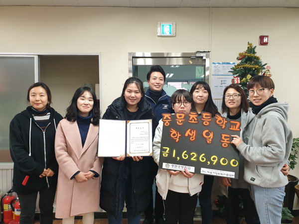사랑이 가득하고 배움이 즐거운 학교를 이끌어가는 중문초등학교(교장 강옥화)가 지난 3일 6학년 학급어린이회를 중심으로 학생들이 기획·진행하고 마무리까지 담당하며 실시한 '행복나눔축제' 수익금 162만6900원을 제주가정위탁지원센터에 후원금으로 기부했다.