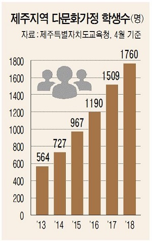 제주지역 외국인 주민·다문화가족 학생이 급증하면서 다문화사회로 가속화되고 있지만 제주도의 다문화 지원정책은 제자리걸음을 하고 있다는 지적이 나온다.
