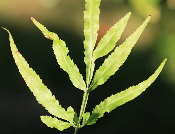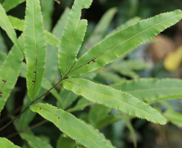 | 양치식물에는 두 가지의 잎을 갖는 경우가 있다. 하나는 생식기관은 가지지 않고 오로지 영양분 생산 기능만을 수행하는 영양잎이다. 보통은 광합성을 활발히 하며 질소대사를 비롯한 많은 영양적 물질대사의 중심이 된다. 마치 꿀벌 중의 일벌에 비교됨직 하다. 나엽이라고도 한다. 다른 하나는 생식에 직접 관련하여 포자형성기능을 갖는 포자엽이다. 전적으로 생식에만 관련하는 경우가 있는가 하면 광합성에 어느 정도 기여하는 잎도 있다. 홀씨잎, 실엽, 생식엽이라고도 한다. 보통 이 둘은 형태와 기능에서 상당히 다르다. 한편, 엽록체가 풍부한 보통 영양엽의 일부분에 포자를 분화하여 포자산포 후에도 영양엽과 동등하게 기능하는 종이 있다. 이러한 잎을 영양포자엽이라고 한다. 양치류에서는 이처럼 영양엽, 포자엽에로의 분화가 철저하지 못한 경우가 많다. |