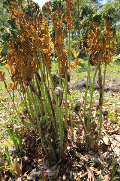 곶자왈에서는 햇빛이 잘 드는 바위틈이나 경사가 심하여 다름 식물들이 자라지 않는 곳을 차지하여 자란다. 포자가 달리지 않는 영양잎과 포자가 달리는 포자잎이 처음부터 구분해서 자란다. 아주 초기 아마도 전년도에 땅속줄기에서 다음해 나올 잎의 형태와 기능이 이미 정해져서 나오는 것이다. 이런 기능의 구분이 어떤 조건에서 정해지는지는 아직 연구사례를 찾을 수 없다. 앞으로 재배하게 된다면 이런 분야의 연구도 이루어지게 될 것이다. 먹기에는 포자잎보다는 영양잎이 보기에도 좋고 식감도 좋아 더 경제성이 높을 것이기 때문이다.