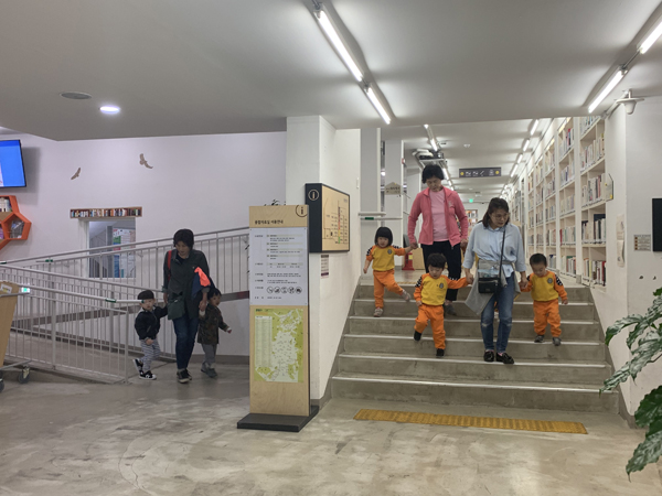 1층은 누구나 쓴다. 소규모 행사나 문화행사가 가능한 작은 홀과 음악감상이나 녹음이 가능한 스튜디오가 있다. 2층은 '어린이'에 맞췄다. 바닥에 눕고 뒹굴 수 있다. 3층은 '청소년'에게 내줬다. 그룹 활동을 하거나 체험이 가능한 공간을 갖추고 있다. 4층은 소규모 공간구획을 활용한 열람실로 누구나에게 개방한다. 5층은 도서관 운영과 관리를 위한 공간으로 활용했다.