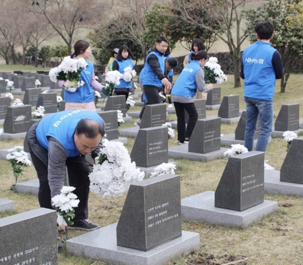 농협 도청지점 직원들은 4·3유족들에게 조금이나마 위로가 되고 싶다는 마음에 매년 4·3평화공원을 찾아 4·3희생자 위패 닦기, 태극기 교체, 헌화 등 봉사를 하고 있다.
