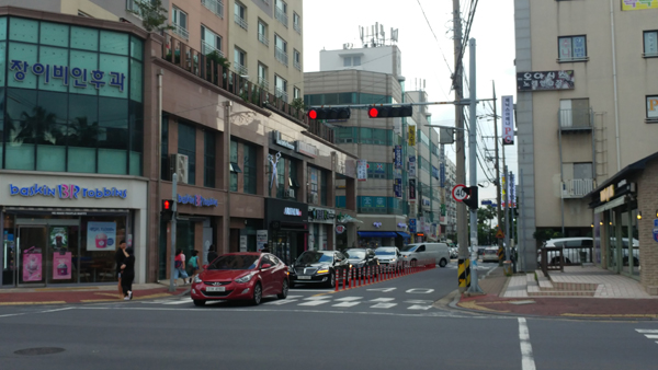 특히 신호등이 설치된 3개소중 SK대리점과 뚜레쥬르 앞 4거리에서 동서로 난 도로는 각각 편도 1차선으로 우정로 진입을 위해 신호 대기를 하는 차량이 있는 경우 뒤에 오는 차량이 우회전이 어렵다는 문제점이 있었다.