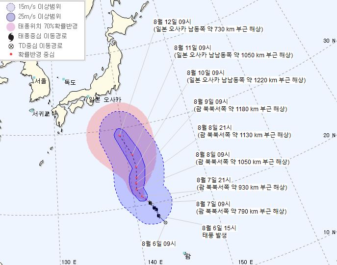 태풍은 12일 오전 9시 일본 오사카 남동쪽 약 730㎞ 부근 해상까지 진출할 것으로 예상됐다.