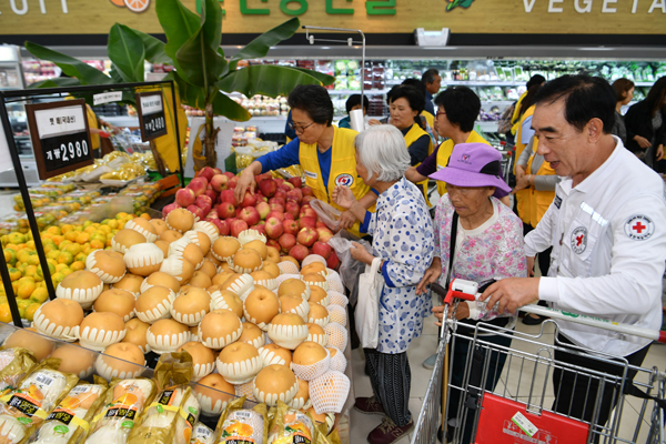 농협중앙회 제주지역본부(본부장 변대근)와 대한적십자사제주도지사(회장 오홍식)는 4일과 5일 이틀간 하귀농협하나로마트(조합장 강병진)와 제주시농협하나로마트노형점(조합장 고봉주)에서 농협임직원과 봉사원, 결연가구 100여명이 참석한 가운데 '추석맞이 차례상 차림' 봉사활동을 펼쳤다.