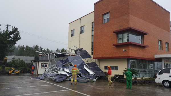 또 서귀포시 서호동과 보목동, 표선면 토산리의 주택에서는 태양광 패널이 부서지거나 넘어지고, 제주시 한림읍 옹포리와 조천읍 조천리, 구좌읍 월정리, 서귀포시 서귀동 등에서는 건물 유리창이 파손되거나 떨어지기도 했다.