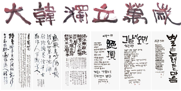 전서, 예서 행·초서, 현대서예 등 다양한 장르의 작품으로, 올해 3·1독립운동 100주년을 맞이한 만큼 선인들의 독립정신을 기리는 작품들도 포함됐다. 특히 회원자작시 역시 작품으로 구성한 게 특징이다.