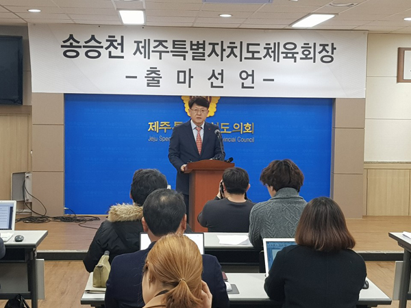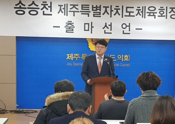 송승천 제주도씨름협회장은 26일 도민의 방에서 제주도 체육회 첫 민간 회장 선출직에 출마를 선언했다.