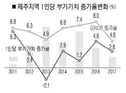 통계청이 지난해 12월 발표한 '2018년 지역소득(잠정)'에서 제주 실질 지역내총생산(GRDP)은 개편 기준을 적용한 2010년 이후 처음으로 마이너스 성장률을 기록했다.