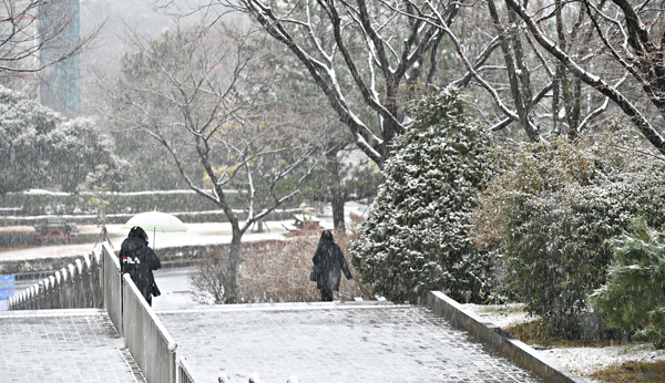기상청은 15일 오전에도 산지와 북·서부지역에 빗방울이나 눈이 날리는 곳이 있을 것으로 예상했다.