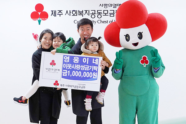 영웅이네 가족은 2016년 2월 영웅군의 돌잔치 축의금을 제주사회복지공동모금회에 기부하며 인연을 맺은 후 올해로 5년째 성금을 전하고 있다. 한권 기자
