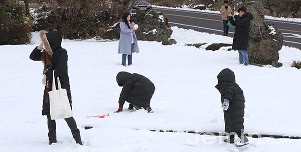 제주도가 관측한 적설량은 같은날 오후 10시 기준 윗세오름 29.8㎝, 진달래밭 31.6㎝, 영실 3.3㎝ 등을 기록했다.