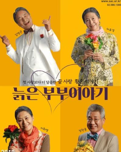 연극 '늙은 부부이야기'는 첫사랑처럼 순수했던 황혼의 마지막 사랑을 담아낸 연극으로 위성신 작가가 연출, 전 문화부 장관을 지낸 배우 김명곤이 주연을 맡았다. 노인들만의 방식으로 천천히 서로에게 물들어가는 사랑을 이야기한다.