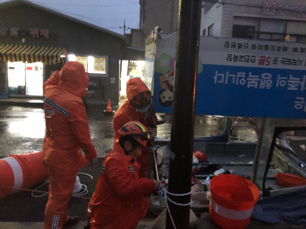 이날 오전 9시 현재 주요 지점별 강수량은 남부 신례 234㎜·태풍센터 190㎜, 동부 표선 122.5㎜, 서부 금악 126㎜, 북부 새별오름 109㎜ 등을 기록하고 있다.