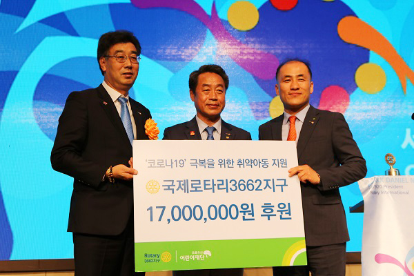 국제로타리3662지구(총재 이기창)는 3일 코로나19로 생계가 어려워진 도내 아동 가정 지원을 위해 후원금 1700만원을 초록우산 어린이재단 제주지역본부(본부장 김희석)에 전달했다.