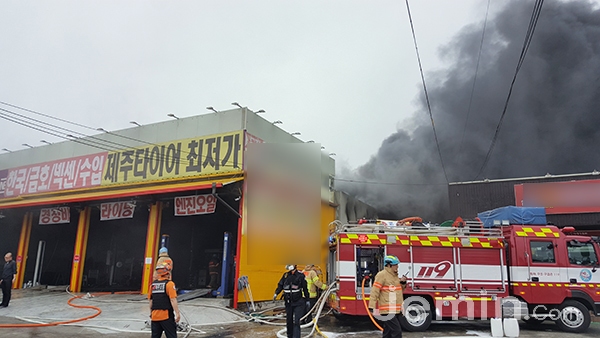 18일 제주소방안전본부에 따르면 이날 오후 1시27분께 제주시 화북공업단지 인근 한 타이어 판매점 창고에서 화재가 발생했다는 신고가 접수됐다.