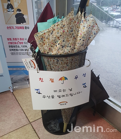 이처럼 변덕스러운 날씨에 우산을 준비하지 못한 민원인들에게 우산을 대여해주는 친절행정시책을 펼치고 있어 민원인들이 칭찬이 자자하다.