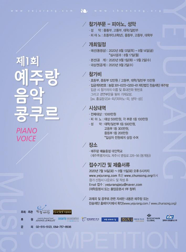 한편 예술학교 예주랑은 다음달 13~14일 개최하는 제1회 예주랑 음악 콩쿠르를 통해 본격적으로 입학생을 모집할 계획이다. 콩쿠르는 피아노와 성악 부문으로 나눠 시행하며 오는 14일부터 다음달 11일까지 신청을 접수받는다. 문의=064-722-4444. 김수환 기자