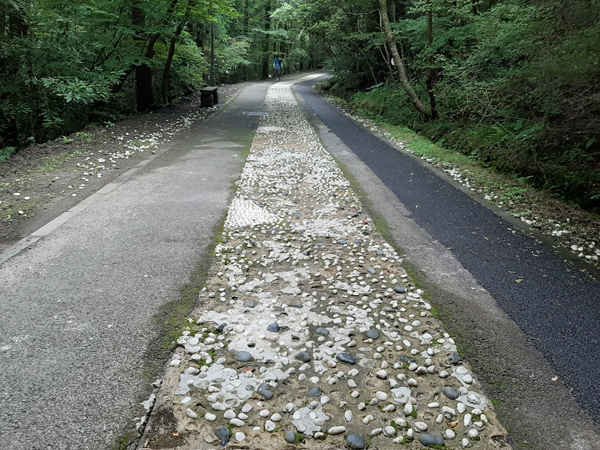 또한, 이곳에는 1.1km에 달하는 건강산책로가 있다. 원시림 속 숲터널로 까만 조약돌과 하얀 조약돌로 만들어진 자갈밟기 길이 조성돼 있다. 이 자갈밟기에 사용된 조약돌들이 부실공사 탓으로 빗물에 많이 씻겨, 산책로 양옆으로 흩어져 있다.