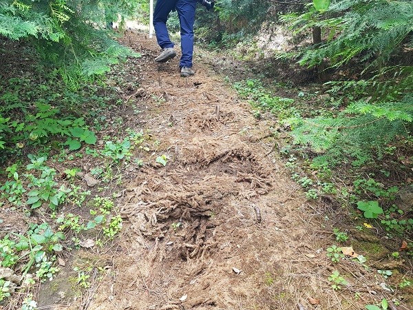 본래 탐방로였던 구간은 땅속 돌들이 보일 만큼 깊게 파여 있는데다 중간중간 철심까지 드러나면서 안전사고도 우려되고 있다.