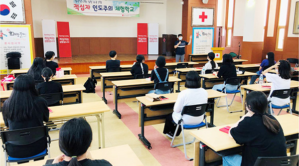 대한적십자사제주도지사(회장 오홍식)는 최근제주적십자사에서 세화고 RCY 단원 및 제주관광대 RCY 회원 등 20명이 참여한 가운데 적십자 인도주의 체험학교를 진행했다. RCY 단원들은 초코머핀 200개를 만들어 지역아동센터 제주지원단에 전달했다.