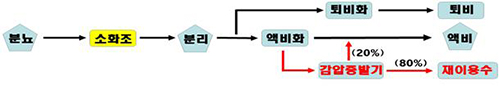 우선 양돈분뇨를 액체탱크에서 공기주입 및 미생물 발효과정을 거친 후 액비화했던 기존에 방식에 최신기술(감압증류 및 역삼투압 방식 등)을 통한 처리 단계를 추가해 방류수 수질기준 이상으로 완전 정화처리하는 방식을 도입한다.