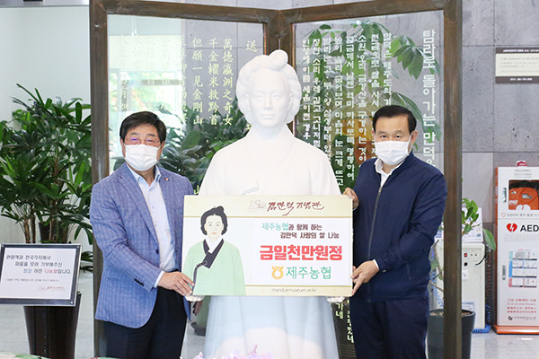 제주농협은 제4회 김만덕 주간(10월18~24일)을 맞아 25일 김만덕기념관에 사랑의 쌀 기부금 1000만원을 기탁했다.