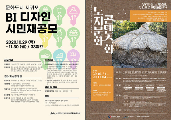 먼저 '105개 마을이 가꾸는 노지문화 서귀포'를 주제로 한 문화도시 서귀포 대표 브랜드 이미지(BI) 디자인을 오는 30일까지 모집한다.