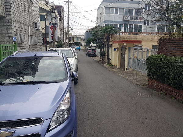 또 다른 소방차 진입 곤란 지역인 제주시 일도2동 이면도로 역시 상습 주차된 차량으로 도로를 가득 메웠다.