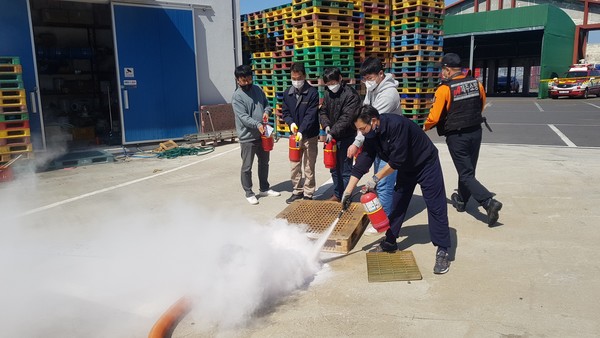 제주서부소방서(서장 문동원)는 최근 지역내 특정소방대상물인 축협공판장과 ㈜한라산소주에서 화재발생시 신속한 초기 대응으로 대형화재 사고를 미연에 방지하는 자위소방대 합동 소방훈련을 각각 실시했다.