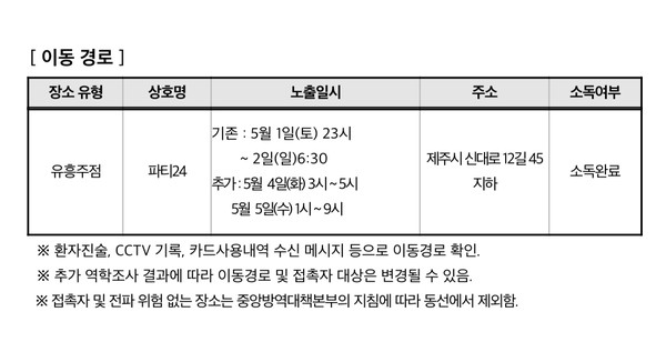 현재 도는 제주시 연동에 위치한 '파티24'에서 지난 6일 코로나19 확진자 2명이 추가되면서 검사를 확대 시행하고 있다.